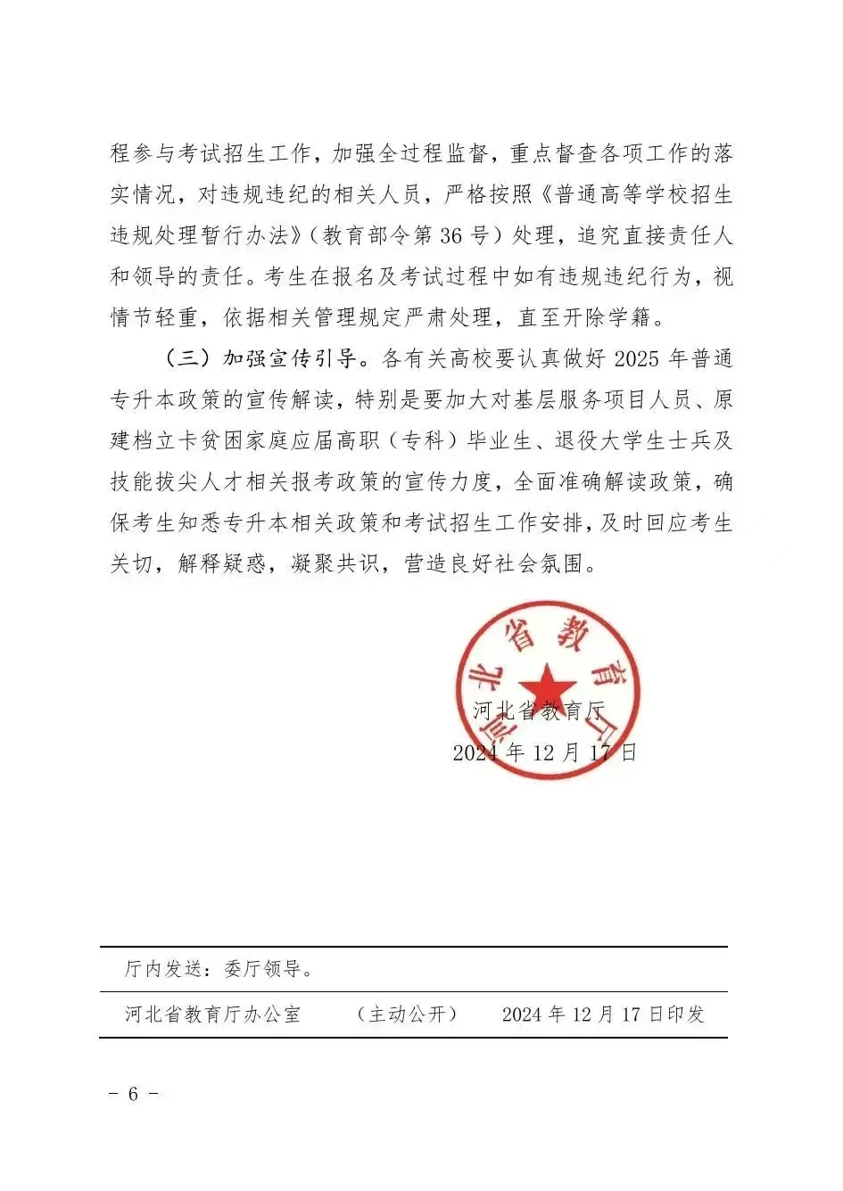 河北省教育厅关于做好2025年普通高等学校专升本考试招生工作的通知